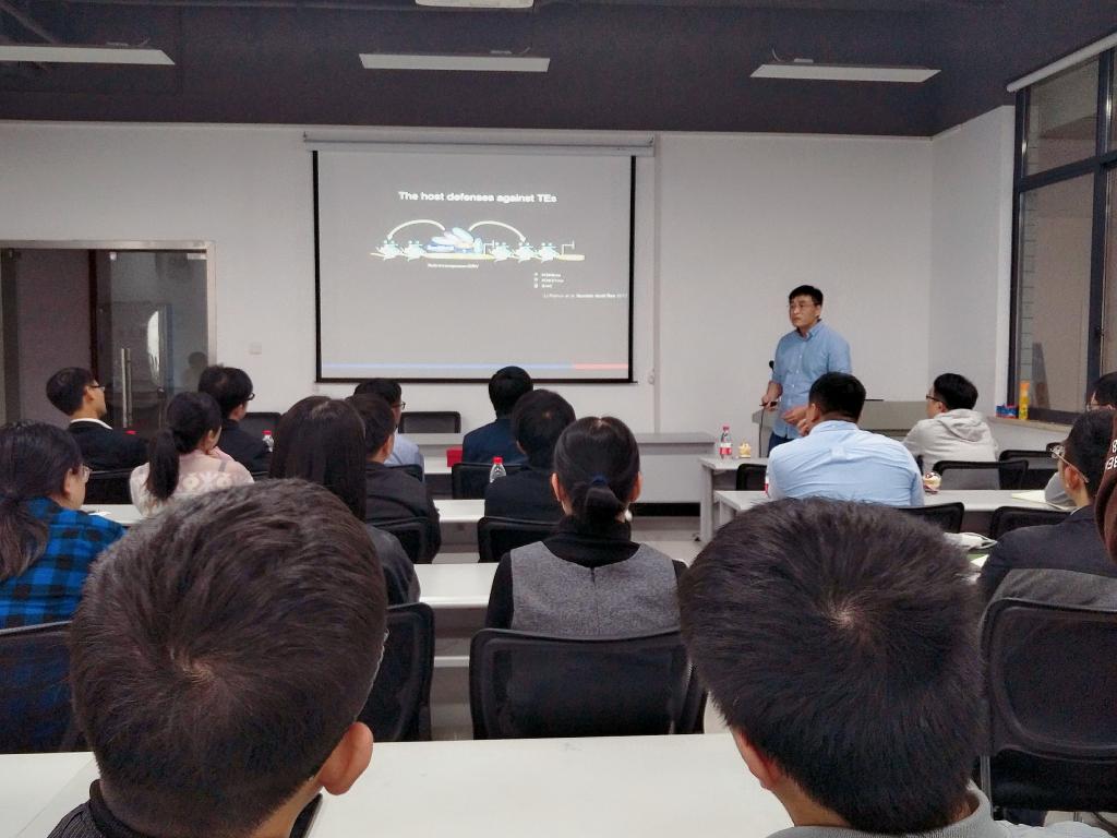 袁教授的报告新颖有趣,他首先给大家推荐了一本与生物进化相关的英文书籍《The Selfish Gene》,并以此为引子,过渡到其科研领域:DNA重复序列在真核胚胎发育和癌症表观遗传调控中的关键作用。袁教授分别介绍了PRC complex介导的H3K27me3在果蝇早期胚胎发育(细胞分裂)中的重要作用,以及结直肠癌中DNA重复序列受SWI/SNF complex调控重新激活的故事。袁凯教授的精彩报告引起了在场师生们的广泛讨论和积极提问,体现了黑人女优