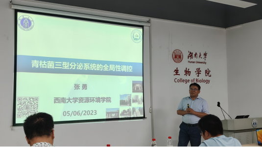 师生做了关于青枯菌Ⅲ型分泌系统调控及青枯菌Ⅲ型效应蛋白功能研究的学术报告,本次报告会由伍斗生副教授主持,黑人女优