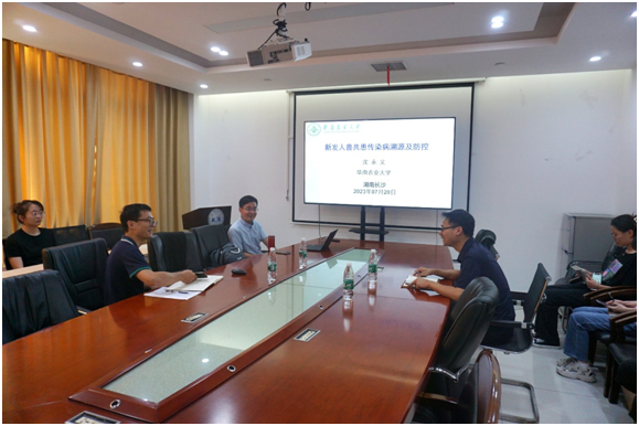 实验大楼A302会议室,作题为《新发人兽共患传染病溯源及防控》的学术报告,介绍了他的团队在H7N9禽流感病毒、MERS-CoV以及SARS-CoV-2溯源方面的研究进展,报告会由彭友松教授主持。