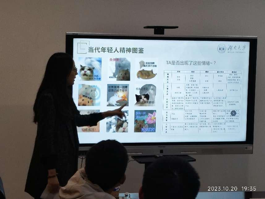 在交流互动环节,于老师就“如何进行心理危机的识别与干预”“有哪些心理援助资源”等问题开展培训,研究生朋辈互助员王城博分享了本科四年担任心理委员的心路历程和成长收获。