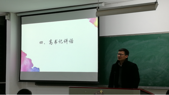 最后,高耀洪书记在聆听了大家的汇报后进行了讲话,他表示此次汇报中,各班都说了自己的优势和不足,因此,他希望大家从现在开始,改变当前的不足,找到适合自己的学习方法,把学习成绩提升,体验美好的大学生活,开启新的征程,同时希望大家不忘初心,砥砺前行,高书记语重心长的讲话获得了同学们热烈的掌声。