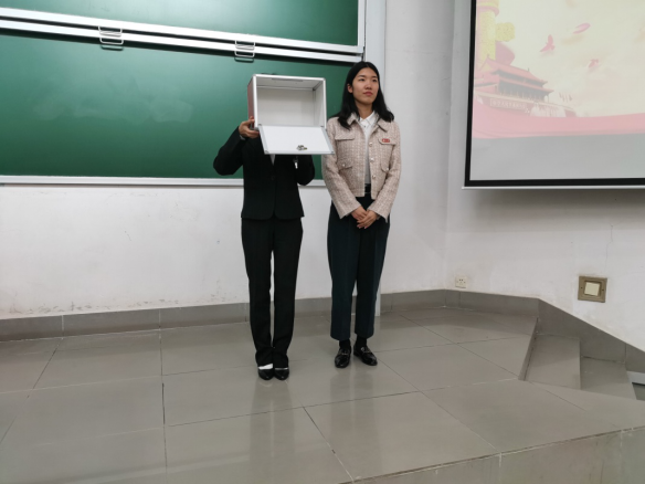 冉晓芬老师查验票箱并向会场所有人员示意
