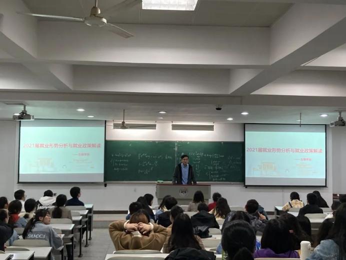 有关毕业年级的就业问题展开。首先,刘浩老师就当前疫情防控形势和就业形势进行了分析,他表示,即使在疫情形势好转的今天,我们依然面临着毕业生数量庞大、疫情影响仍有不确定性的问题。随后,刘浩老师介绍了国家部委关于促进毕业生就业的相关通知以及学校开展的就业服务,并提醒同学们注意就业安全。