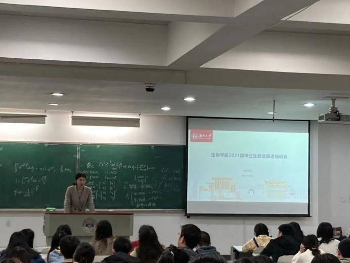 陈树芸副书记、刘浩老师、冉晓芬老师、杨雨辰老师及2021届全体本科生、研究生参加会议,杨雨辰老师主持会议。