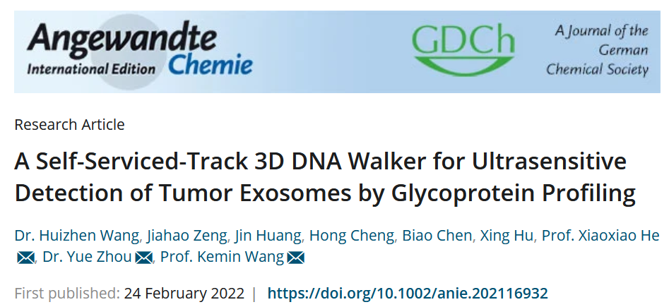 王柯敏/何晓晓团队和湖南省肿瘤医院等单位合作,报道了一种基于轨道自助型三维DNA步行器的肿瘤外泌体糖蛋白分析与超灵敏检测方法,相关研究成果以“A Self-Serviced-Track 3D DNA Walker for Ultrasensitive Detection of Tumor Exosomes by Glycoprotein Profiling”为题发表在国际化学领域权威期刊《德国应用化学》(Angewandte Chemie International Edition)上。黑人女优